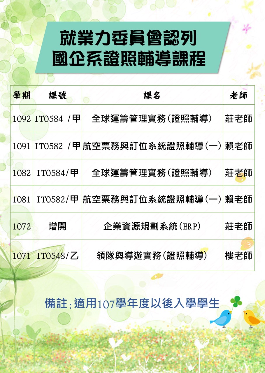 《公告》107-109学年度就业力委员会认列证照课程