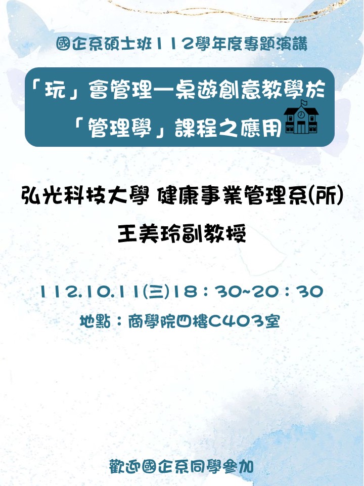 硕士班112学年度专题演讲 -「玩」会管理—桌游创意教学于「管理学」课程之应用