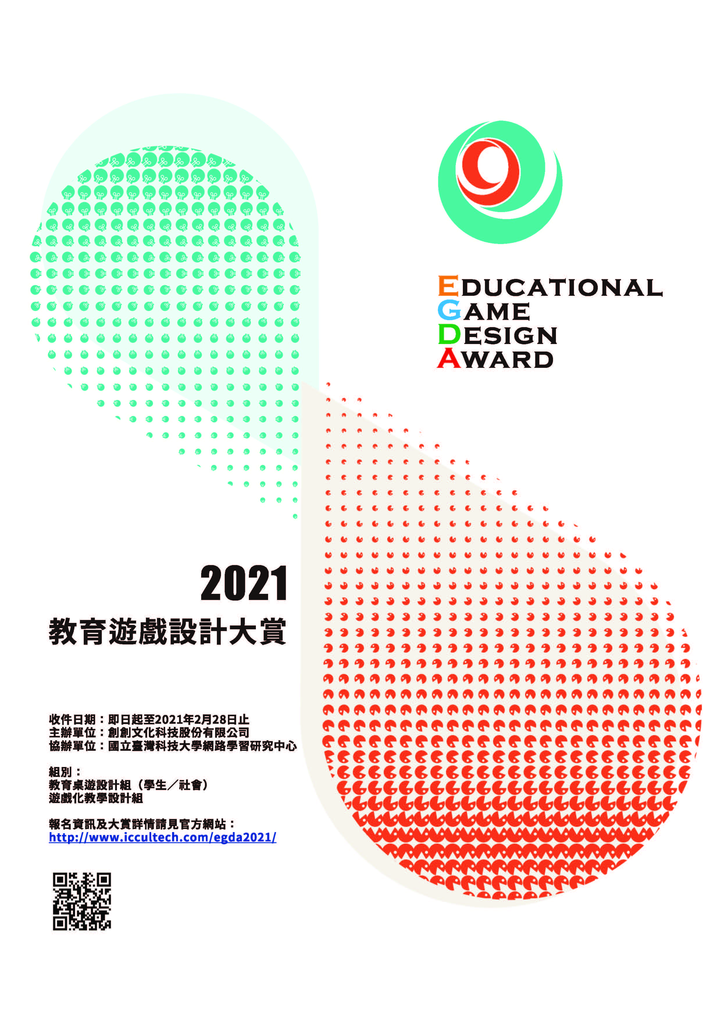 主旨:檢送「全球華人教育遊戲設計大賞(2021 Educational Game Design Award)」競賽辦法及電子海報各乙份,惠請轉知各位同學、各系所及桌遊相關社團,並歡迎貴校師生踴躍參加。